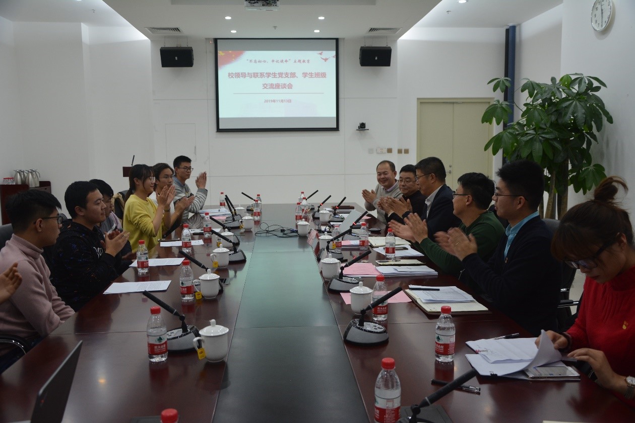 11月13日下午,空间与环境学院本科生党支部及173012班在沙河校区主楼A413开展“不忘初心,牢记使命”主题教育交流座谈会,副校长刘树春同志,校园规划建设与资产管理处、沙河校区管理委员会办公室负责同志、空间与环境学院学生工作负责人以及近40名学生参会。