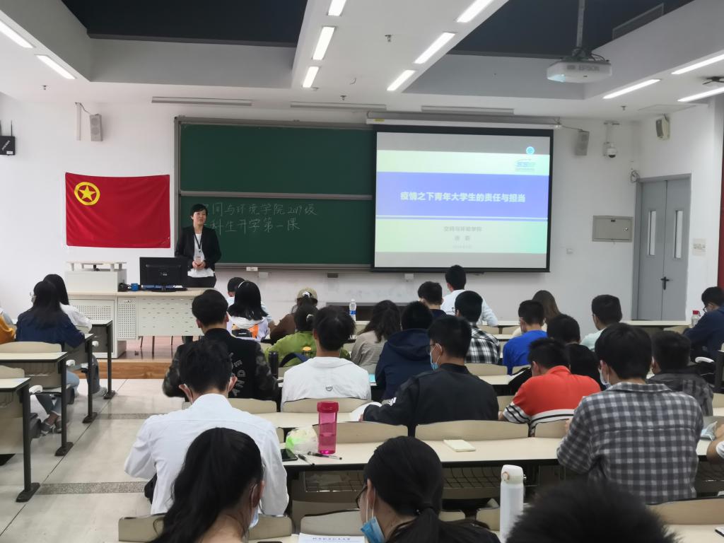 为进一步做好本科新生入学教育,加强学生思政引领,9月23日下午,空间与环境学院党委书记唐莉以《疫情之下青年大学生的责任与担当》为题,为学院2019级本科生讲授“开学第一课”。