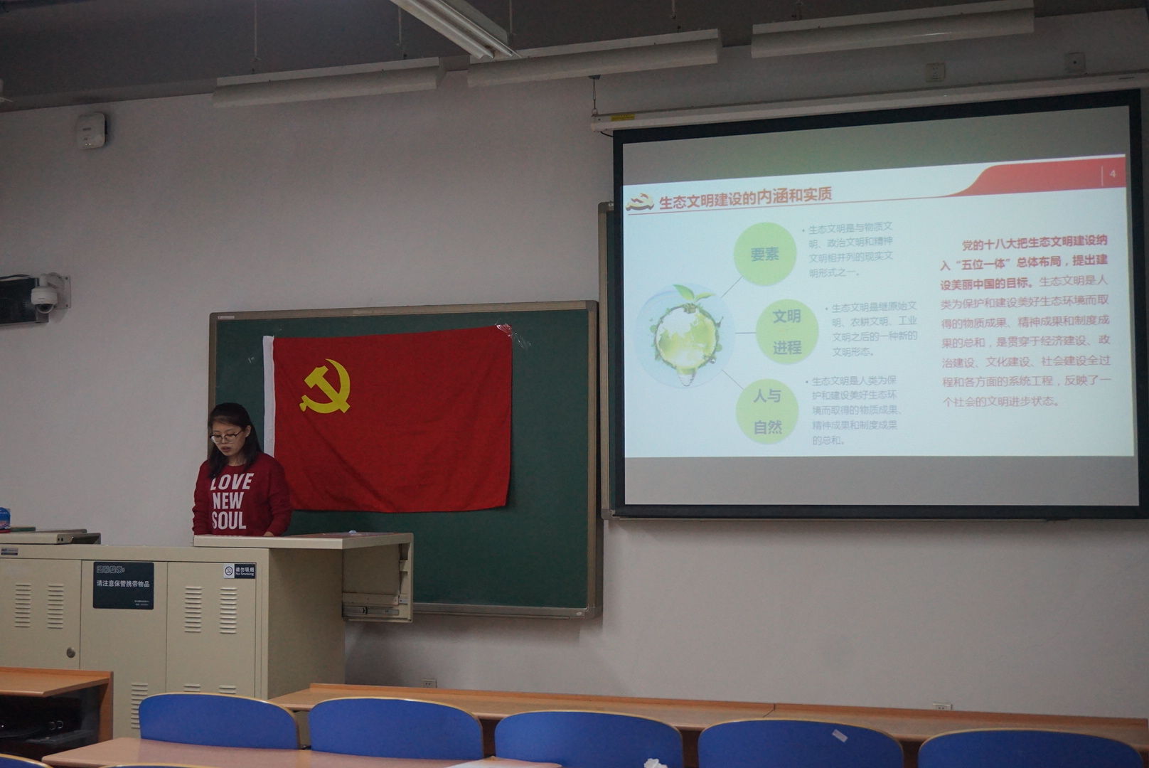 在整个宣讲期间,白坤同学和于秋曼同学就积极与台下同学进行互动和提问。请同学们回答十九大相关问题。宣讲结束后,与会党员围绕当日的主题进行了交流研讨。大家分别从如何加强生态文明建设,如何把个人奋斗和新中国伟大复兴的历史进程有机结合发表了自己的看法。同学们阐述了自己的观点并与主讲人进行了探讨和交流。李世邦同学提出,要将生态文明建设的思想融入日常的工作中,切实响应党的号召。彭方正同学提出,每一位青年都应牢记自己的使命,保持制度自信和文化自信,为中国梦的实现而奋斗。